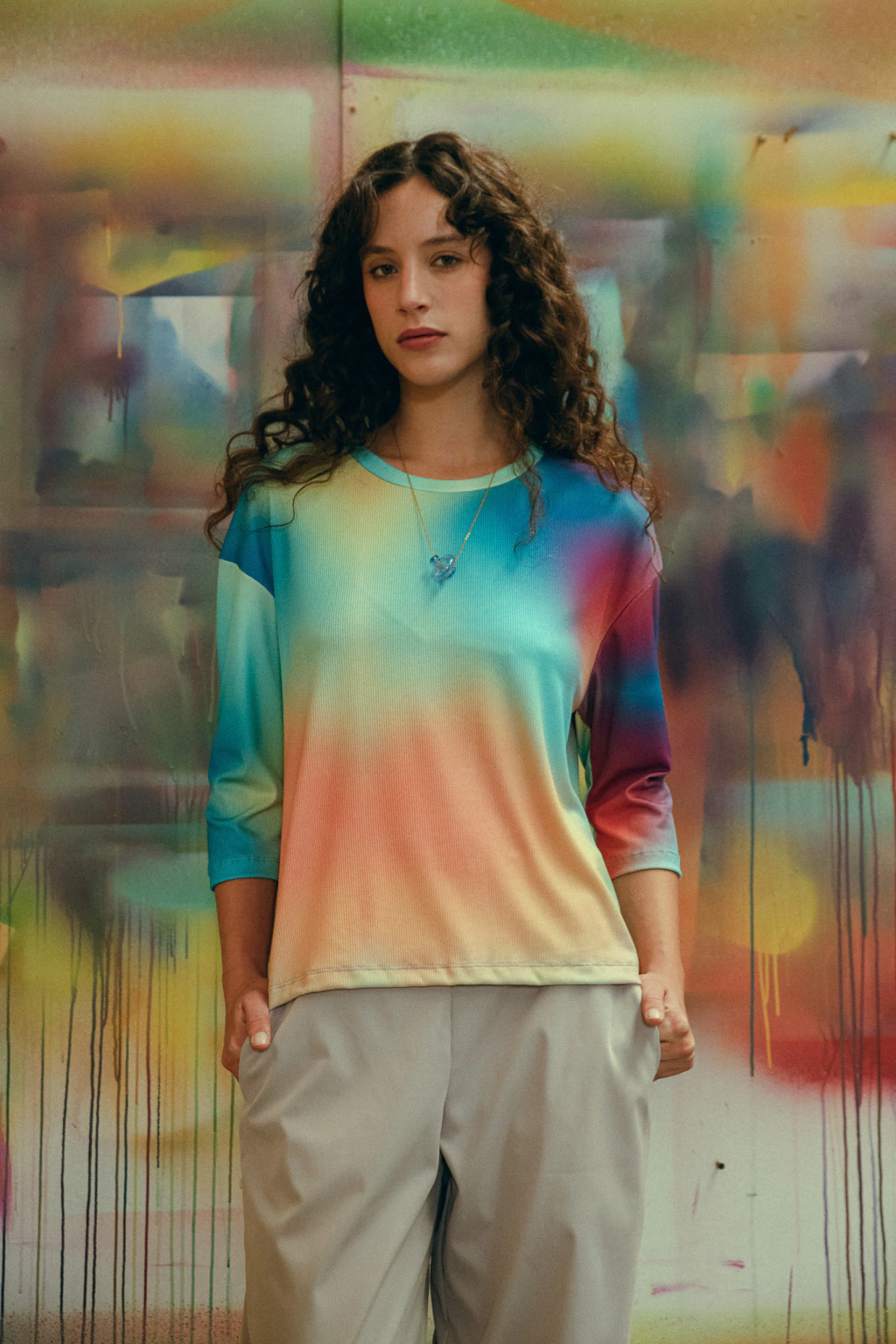 Es nuestro remerón anchito con mangas 3/4 en morley. Comodísimo y canchero. El textil es morley, suave al tacto y cálido.